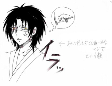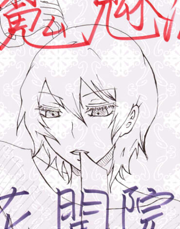 なんか友人Cが、私が(落書きするために)所有する大量の印刷用紙にいきなり文字を沢山書きはじめまして・・・その中にこんなのがあったので『魔魅流』と『花開院』の間に描いてみました。奴は手枷に喜んでました。